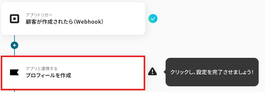 「顧客が作成されたら(Webhook)」をクリックします。