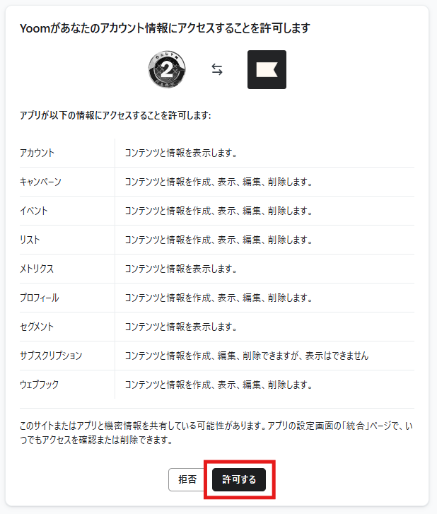 内容を確認して、「許可する」をクリックしてください。