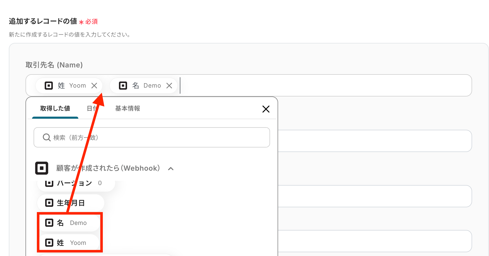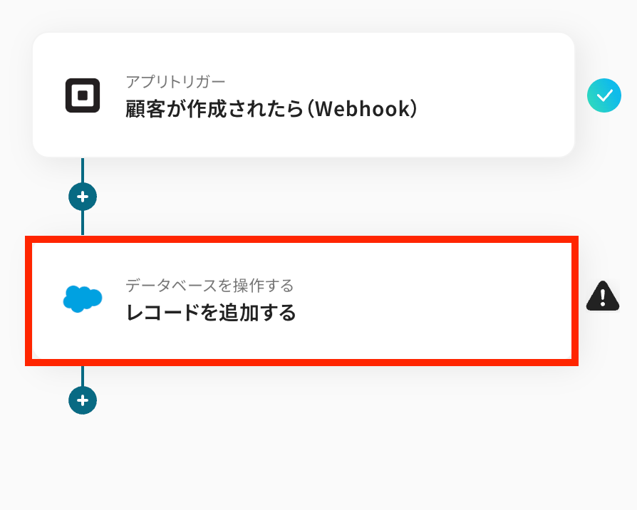 Squareから取得した値を利用して、Salesforceでレコードを追加する設定を行います。