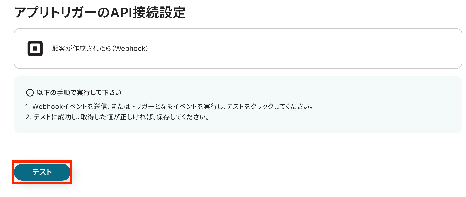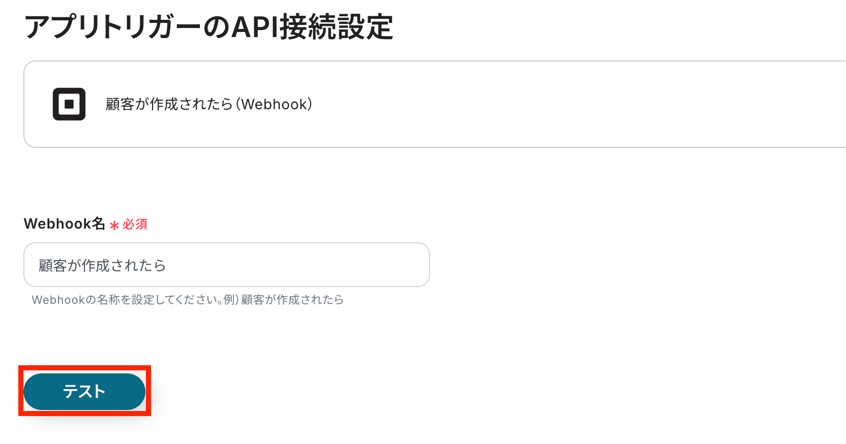 Webhook名を設定したら「テスト」ボタンをクリックしてください。