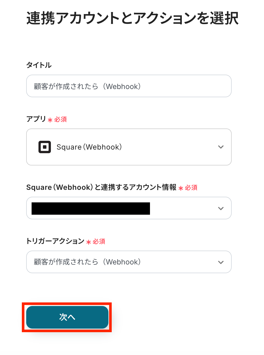 トリガーアクションは、テンプレート通りに「顧客が作成されたら」のままで大丈夫です。