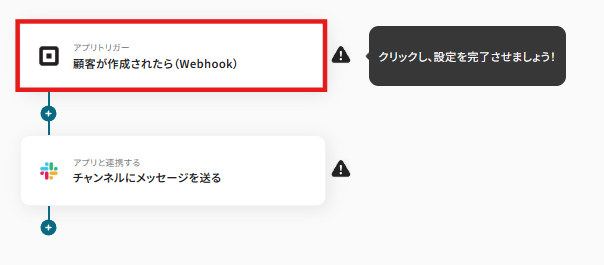 Squareで顧客情報が作成されたことを自動化のトリガーにするための設定を行います。