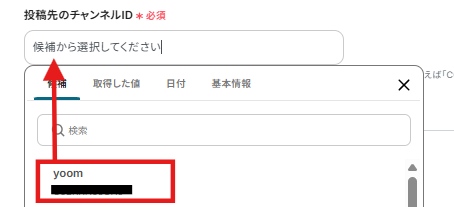 投稿先のチャンネルは、以下の画面のように候補から選択しましょう。