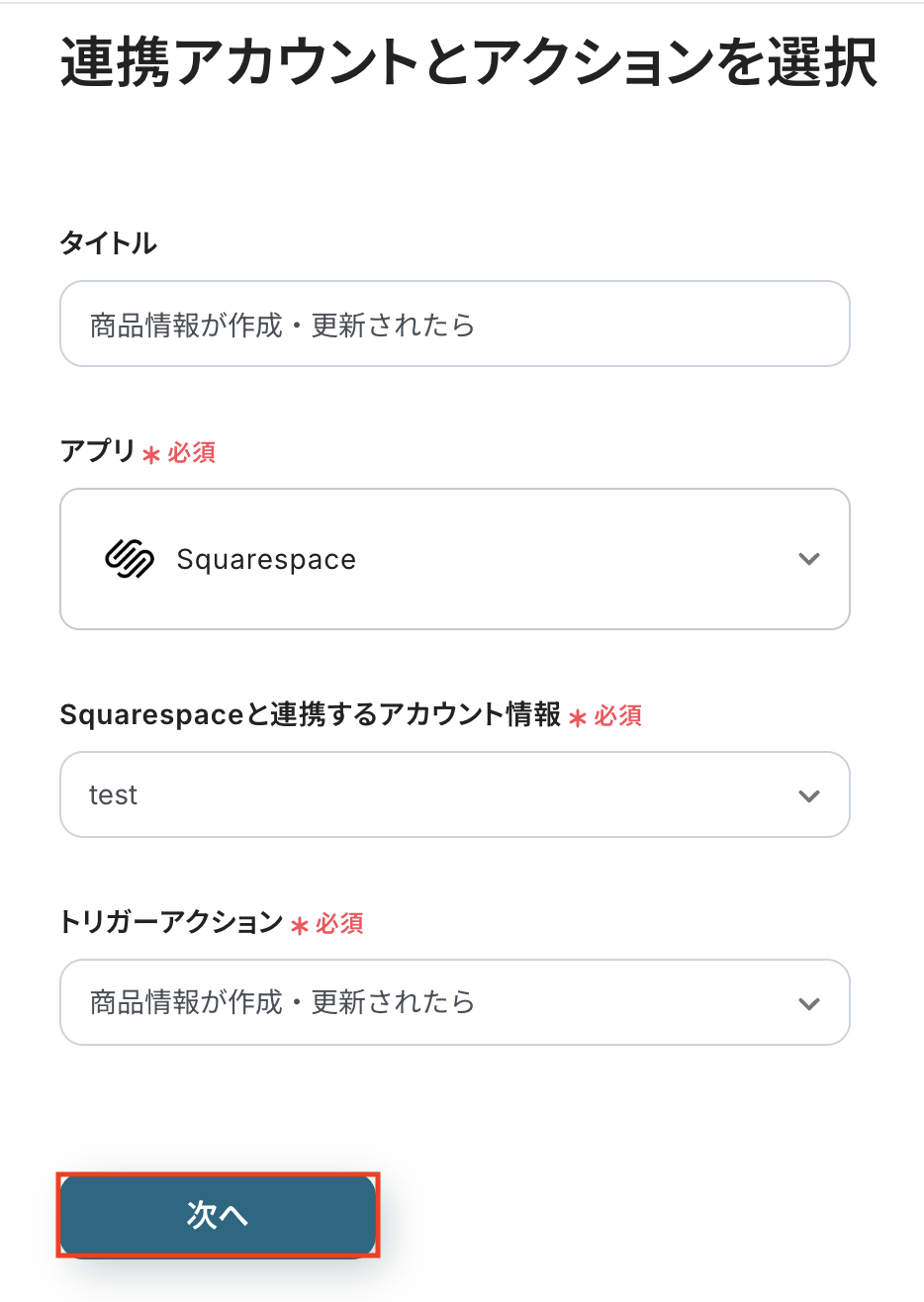 ステップ3: Squarespaceのトリガー設定