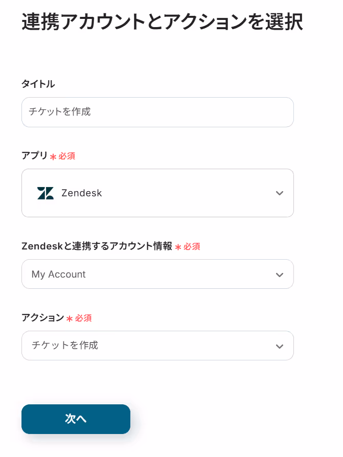A:可能です!Zendeskでチケットを作成するアクションを設定する際は、