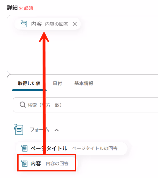 件名は、前項で取得した値から「ページタイトル」を選択します。