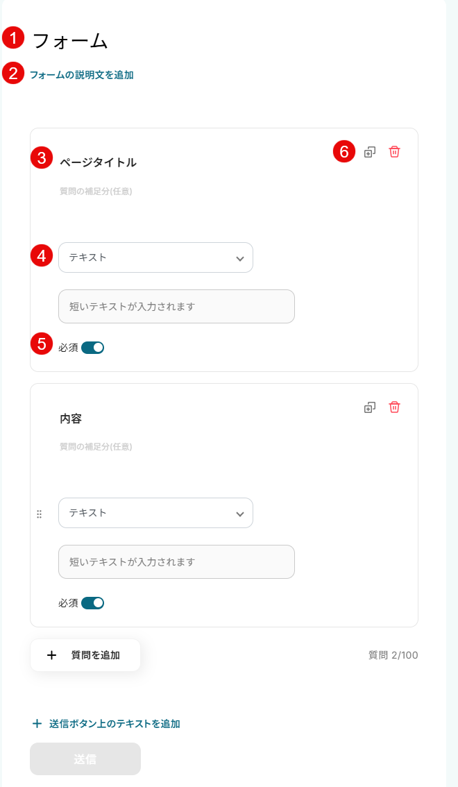 ⑥の左のアイコンから項目をコピー、右のアイコンで項目を削除できます。