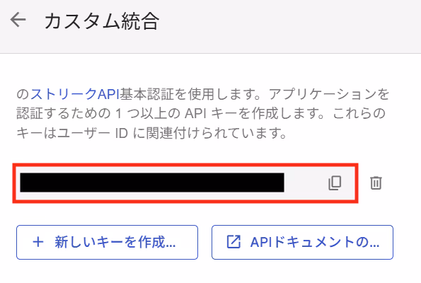 「新しいキーを作成」をクリックすると、APIキーが作成されるのでコピーしてください。
