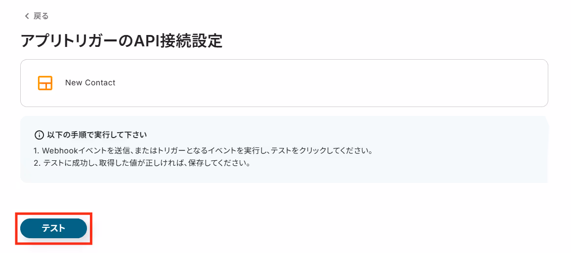 インポートが完了したら、Yoomの画面に戻り「テスト」を実行します。
