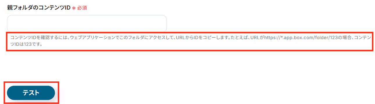 赤枠内の説明を参考にして、親フォルダのコンテンツIDを手入力します。