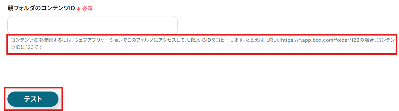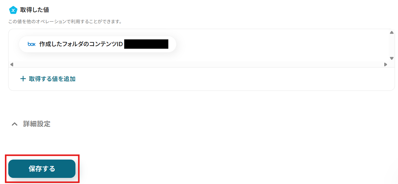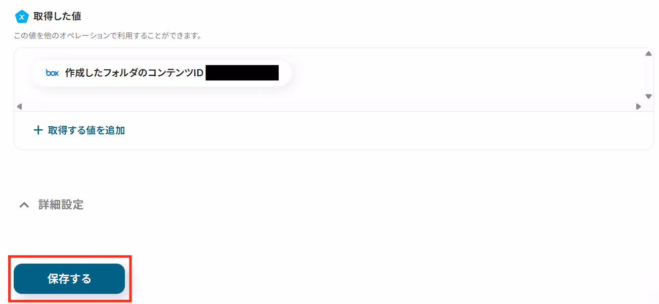 Streakと同様に、ステップ1でマイアプリ連携したBoxのアカウント情報が自動で表示されます。