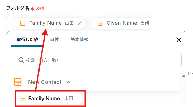 例えば、親フォルダ「2025年度顧客」の中に、新しいフォルダを自動で作成することができます。