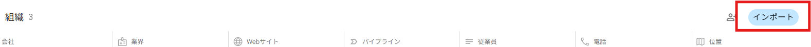 ファイルが作成できたら、Streakの「コンタクト」または「組織」から「インポート」をクリックします。