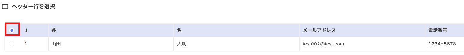 ヘッダー行を選択し、「次」をクリックしてください。