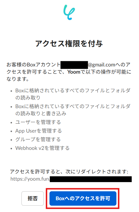 内容を確認して、「Boxへのアクセスを許可」をクリックします。