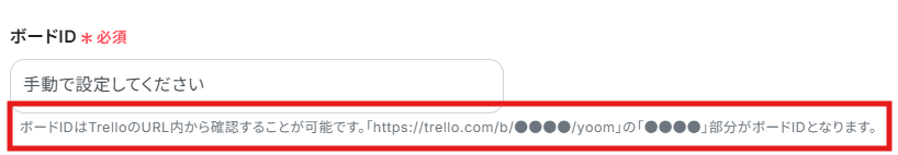 赤枠内を参考にして、連携したいボードIDを手入力します。
