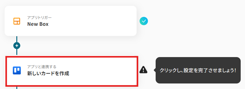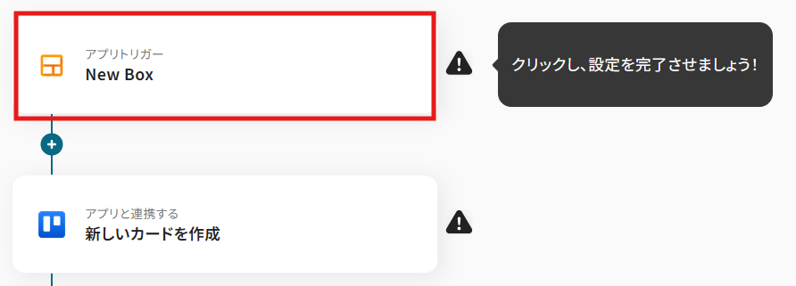 トリガーアクションは「New Box」のままで次に進みましょう!