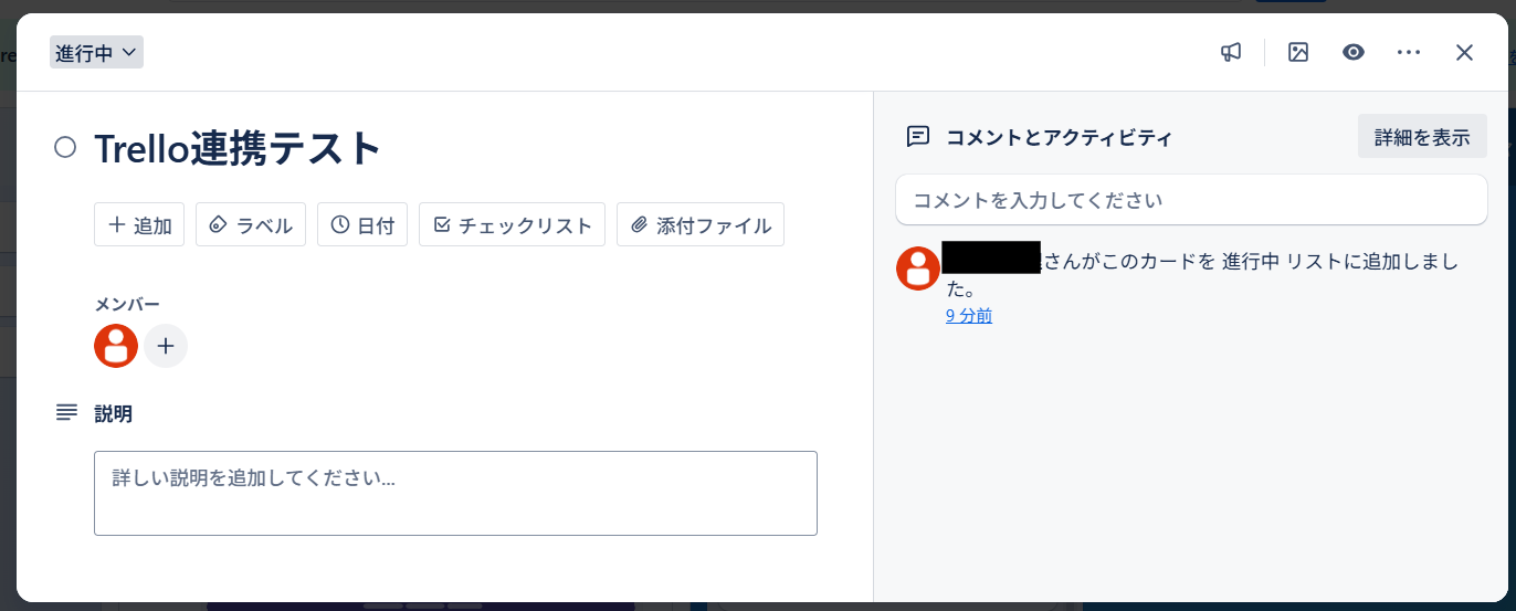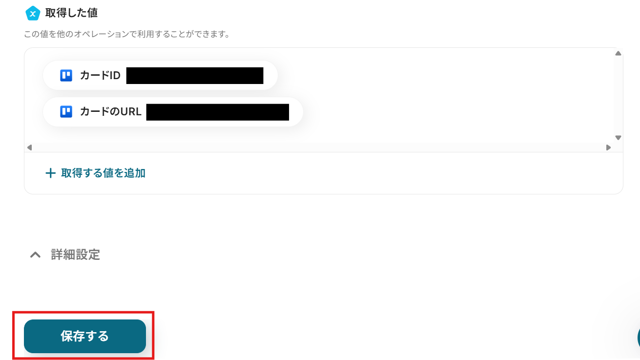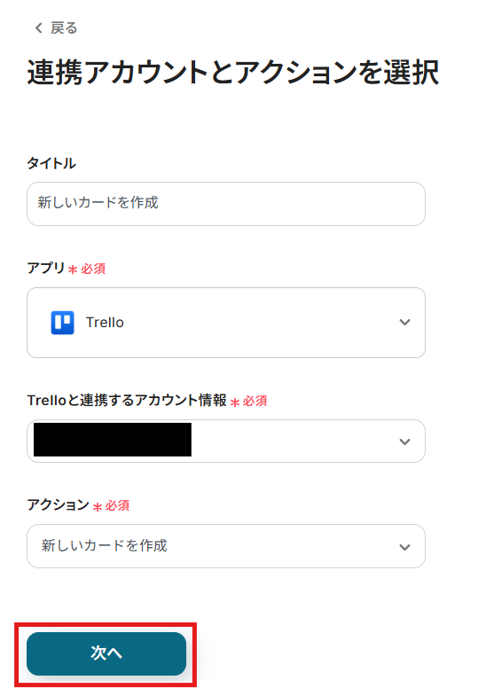 実行アクションは「新しいカードを作成」のままで次に進みましょう!