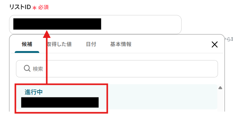 編集欄をクリックすると、連携したボードのリスト候補が表示されます。