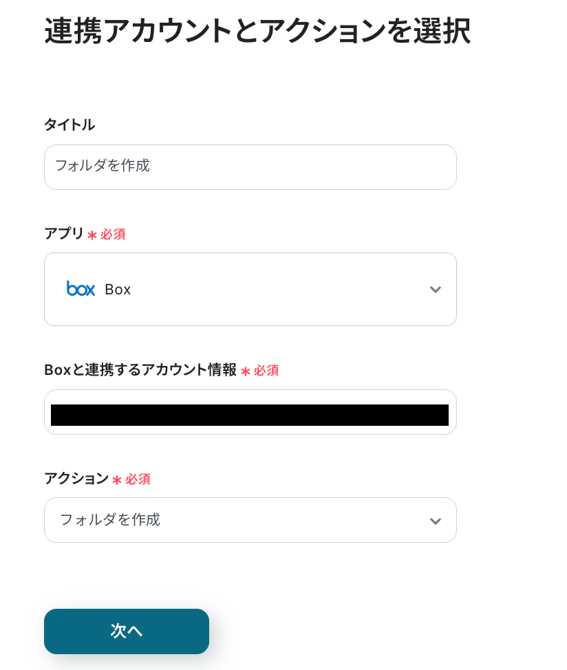 アクションは「フォルダを作成」のままにして、「次へ」を押します。