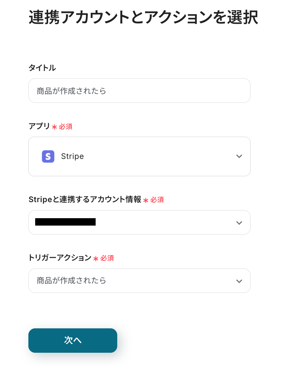 まずは、Stripeで商品が作成された際に、フローボットが起動するように設定を行います。