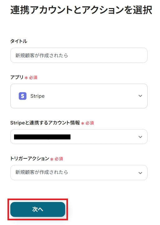 ステップ3:Stripeのトリガー設定