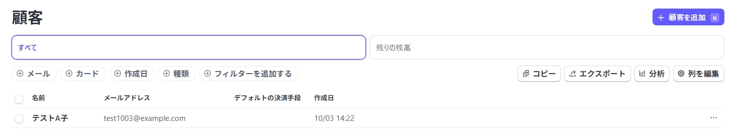 テンプレートの設定に移る前に、テスト用にFStripeで新規顧客を作成してください。