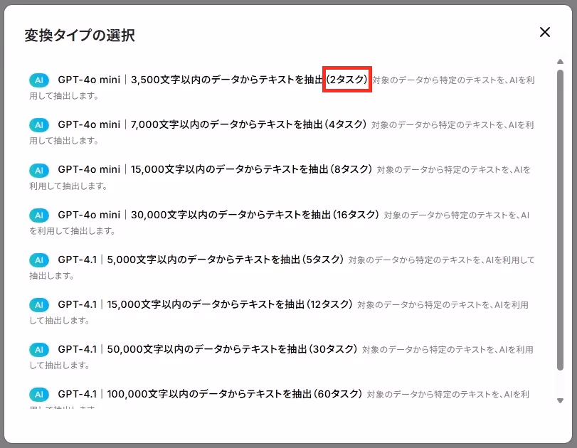 続いてテンプレートの上から2番目「テキスト抽出」を開きます。