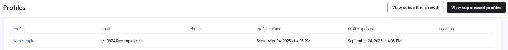 Klaviyoを確認すると、以下の通りプロフィールが作成されています!