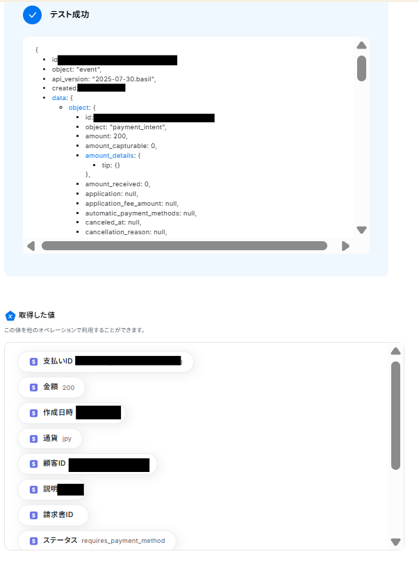 Stripeで顧客情報やサブスクリプション詳細、商品情報を取得する各アクションでは、対象のIDを固定値で指定したり、前のステップで取得した情報を変数として設定したりすることが可能です 日付や日時の形式を変換するアクションでは、変換対象の日時情報を前のステップから取得したり、変換後の形式を任意で選択したりすることが可能です kintoneへレコードを追加するアクションでは、アプリのどのフィールドにどの情報を登録するかを、固定値や前のステップで取得した情報を利用して自由に設定できます ■注意事項
