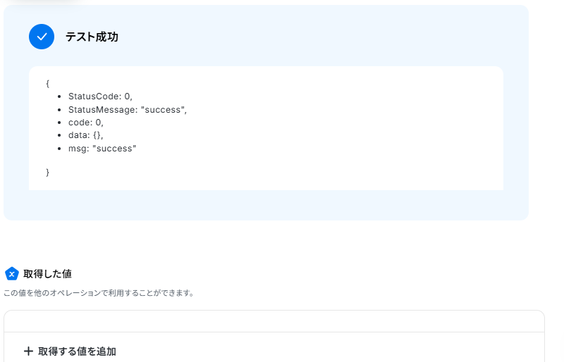 テストが成功し、取得した値が入ればOKです。