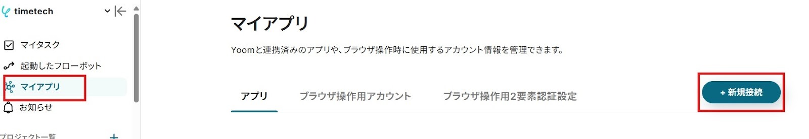 Yoomにログインし、画面左側にある「マイアプリ」をクリックします。
