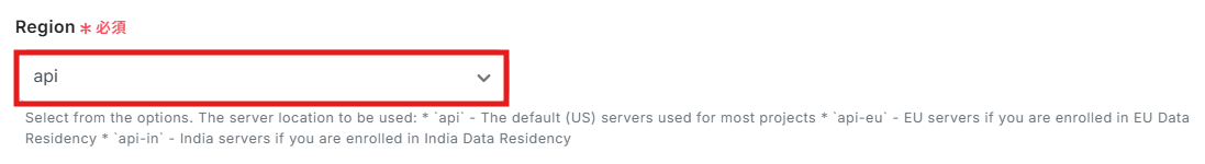 基本的には変更する必要はありませんが、特定の地域でサービスを利用する場合は、プルダウンから変更できます。