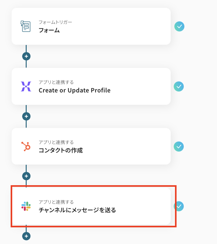 その場合は、フローにSlackの「チャンネルにメッセージを送る」アクションを追加してご利用ください。