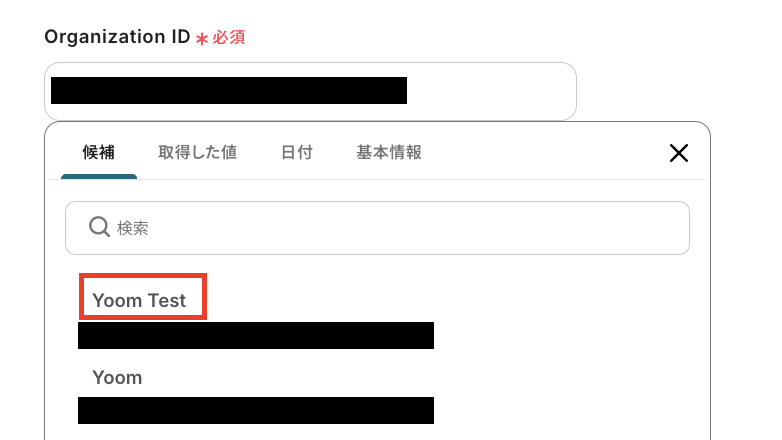 Organization ID:入力欄をクリックすると、Yoomと連携しているPostHogアカウントに紐づいた候補が表示されます。