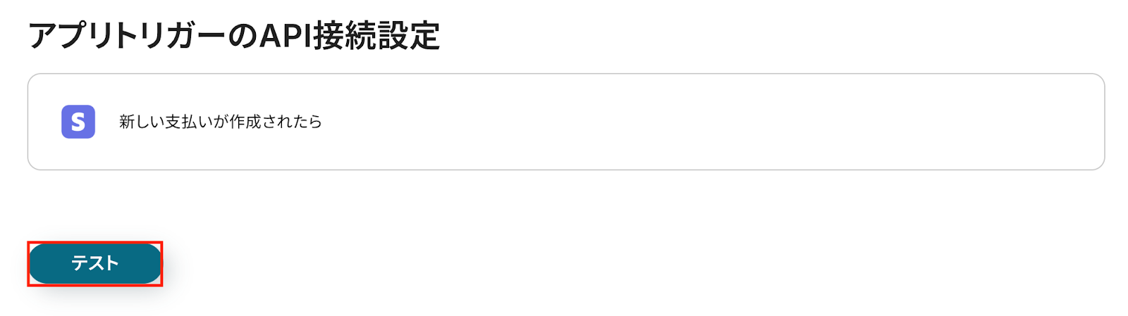 先ほど作成した支払いが正しく受信されるかを確認するために、「テスト」をクリックします。