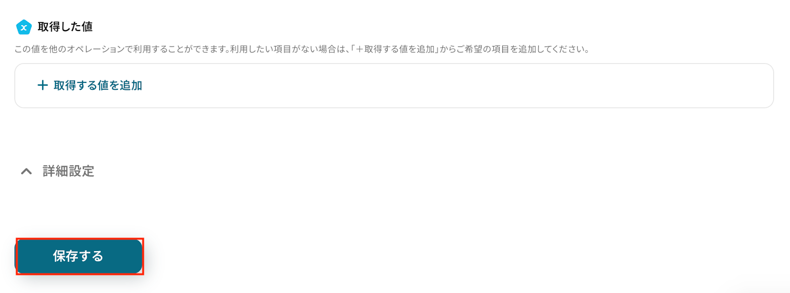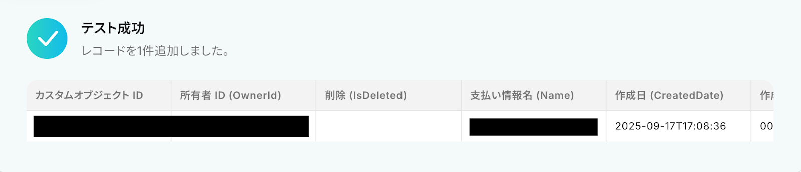 以下の画像の取得した値を利用して、Salesforceへレコードの追加が可能です。