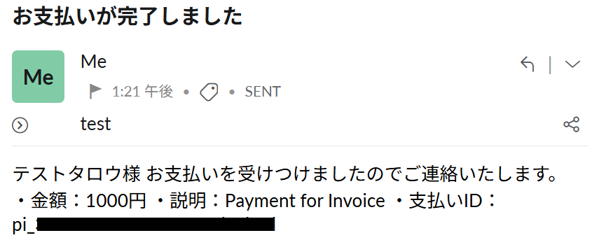 先ほど取得した顧客情報を用いて、支払い完了通知を送信します。
