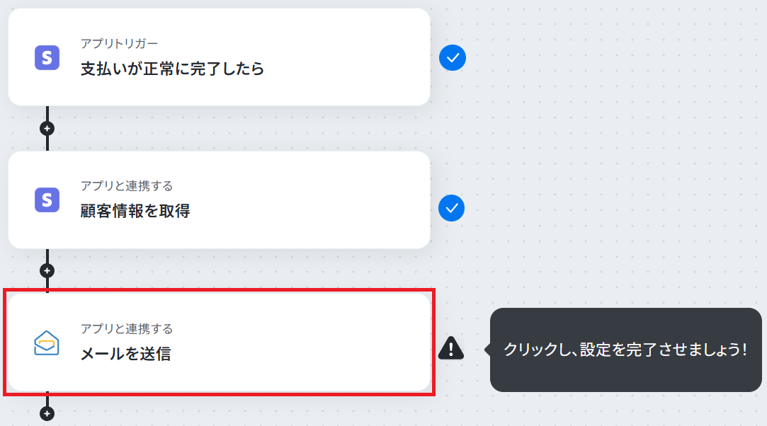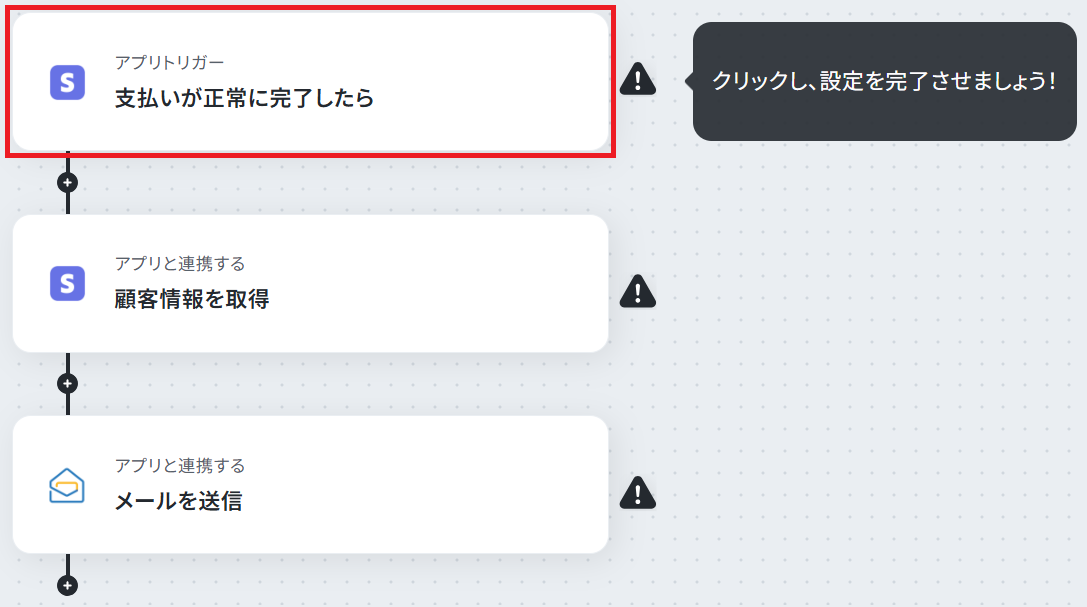 今回はStripeで支払いが正常に完了したら、Zoho Mailでメールを送信するフローを作成していきます!作成の流れは大きく分けて以下です。