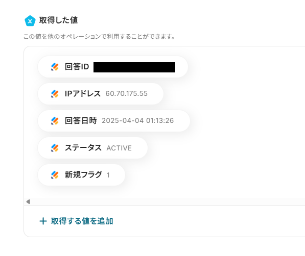 取得したアウトプットは、後続の設定で活用できます!