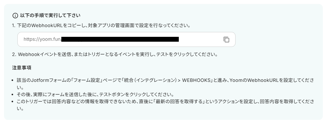 ・JotformのWebhook設定方法はこちらをご参照ください。