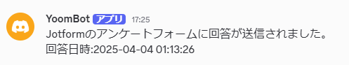 Jotformのアンケートフォームに回答があったら、Discordに回答結果を自動で投稿する