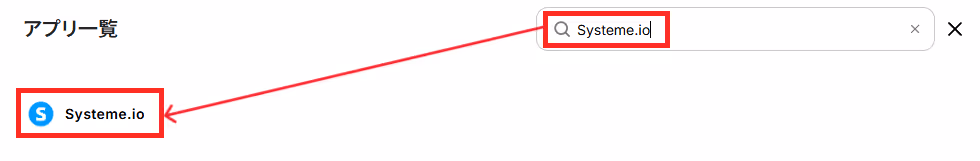 アプリ一覧の検索窓からSysteme.ioを検索し、クリックします。