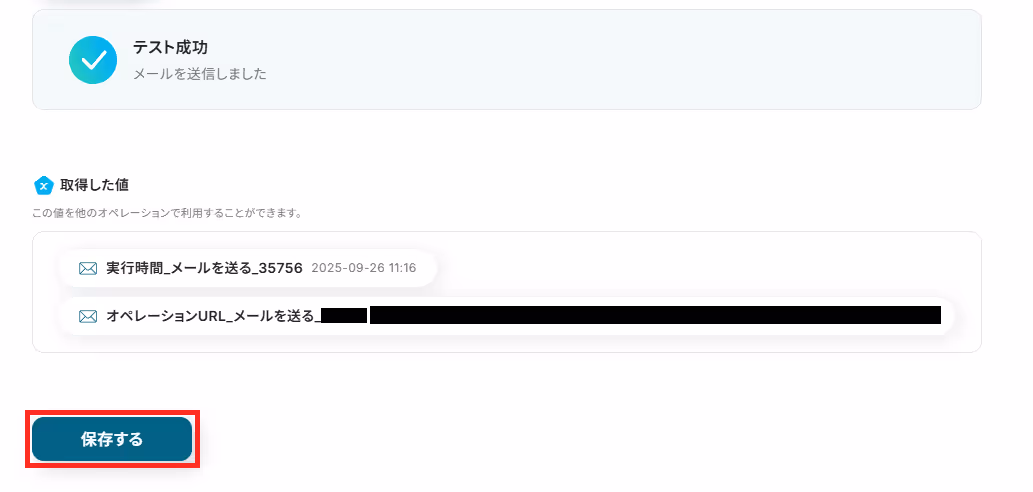 確認できたら、Yoomに戻り「保存する」を押してください。