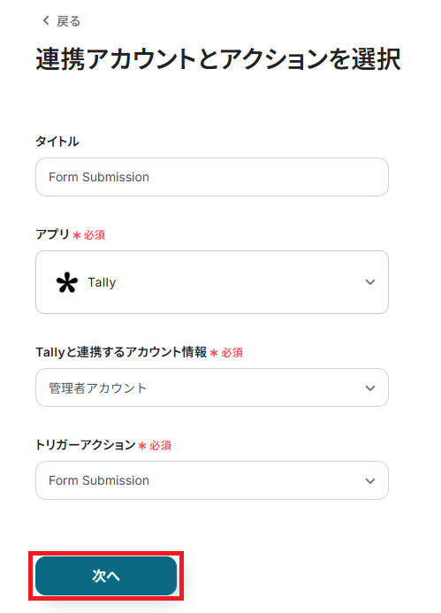 ステップ3:Tallyのトリガー設定