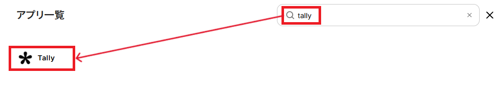 アプリ一覧の検索窓からTallyを検索し、クリックします。