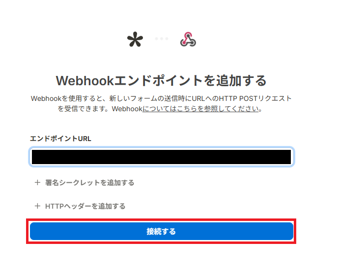 ウェブフックの「接続する」を押してください。