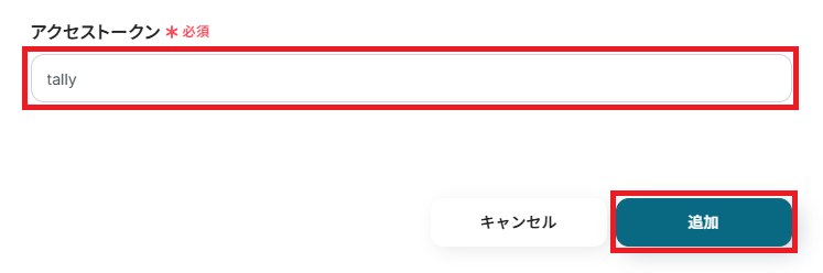 「アクセストークン」は「tally」と入力し、最後に追加をクリックしてください。
