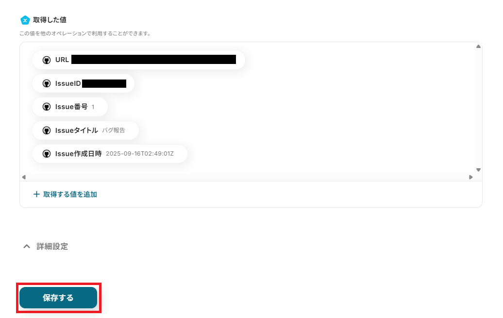 確認ができたら、Yoomに戻り「保存する」を押してください。
