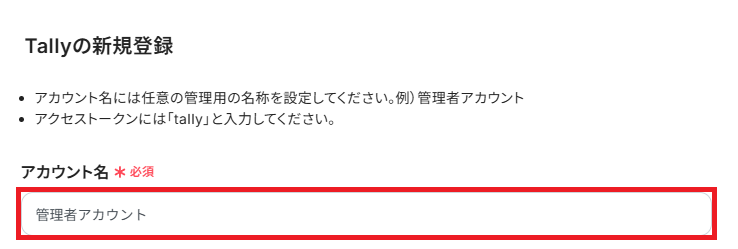 「アカウント名」は任意で管理用名称を設定してください。
